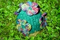 - Mit Häkelblumen auf dem Korbrand