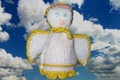 Selbstgestrickter Eierwärmer in Engelsgestalt.