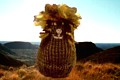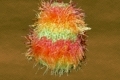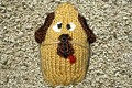 - Aus gelber und brauner Wolle gehäkelt.