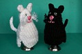 - Beide gestrickt im Perlmuster, mit Watte gefüllt.