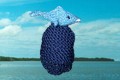 - Komplett gestrickt aus blauer Wolle