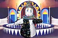 - Oben hängt ein kleiner weißer Bommel an der Mütze.
