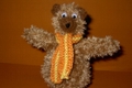 Selbstgestrickter Eierwärmer in Teddygestalt.
